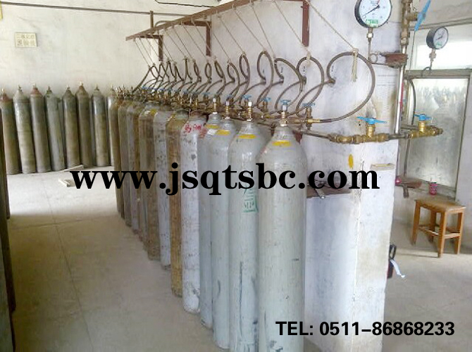 充灌氧气时在进入集容管前,下部装有气水分离器一个,以便及时在充瓶前分离氧气中的水份,净化氧气的纯度。防倒链是用于围圈氧瓶起固定作用的。气体汇流排是将数个气瓶分组汇合后进行减压,再通过主管道输送至使用终端的系统设备,主要用于中小型气体供应站以及其它适用场所。